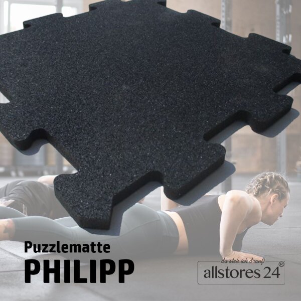 Puzzlematte - Fallschutzmatte - Fitnessmatte PHILIPP 15mm ohne Drainage schwarz