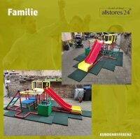 Unsere Fallschutzmatten TINA - 30mm - mit Drainage in den Farben rot und grün und schwarz INKLUSIVE Steckverbinder.